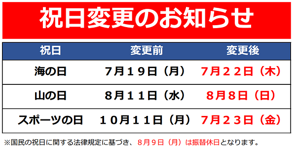 その変更に伴い、弊社の休業日も変更となっておりますのでよろしくお願い致します。